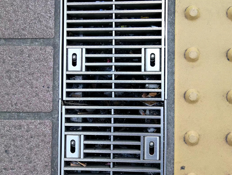 地溝蓋板采用不銹鋼經(jīng)沖壓,折邊,成型等工藝加工而成,無焊接工藝(因焊接處材料組織發(fā)生變化易生銹)。